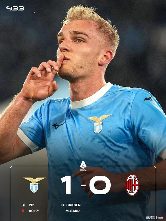 【意甲】伊萨克森破门,米兰0比1拉齐奥落后国米8分