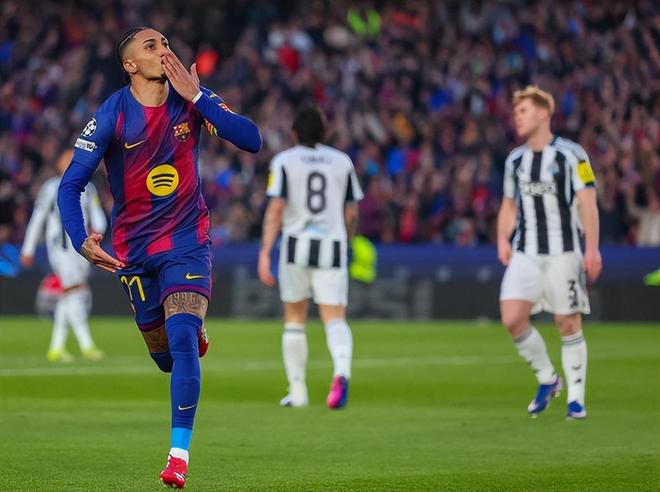 十分钟时间连丢3球,纽卡斯尔大势已去,主帅艾迪豪也早早摆烂提前投降改打5后卫;第72分钟,雅各布-拉姆齐后场回传失误送大礼,拉菲尼亚拦截断球推射完成双响,7:2,总比分8:3!除了2粒进球,拉菲尼亚还分别助攻费尔明和莱万破门,还制造了点球,单场一人独造5球;赛后拿到了满分的评价。