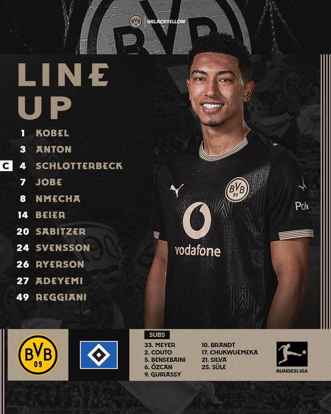 多特vs汉堡:拜尔、阿德耶米首发,萨比策、恩梅加出战